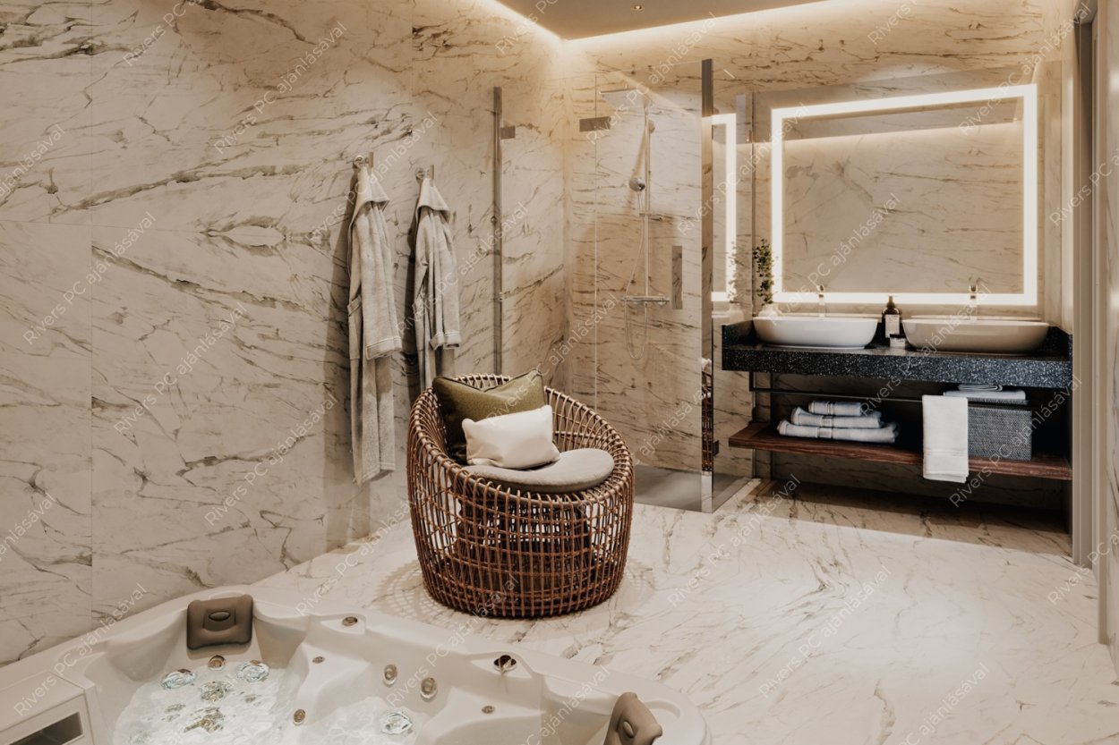 • 1. emeleti lakás: 147 m² + 15,99 m² fedett terasz + 22,06 m² terasz